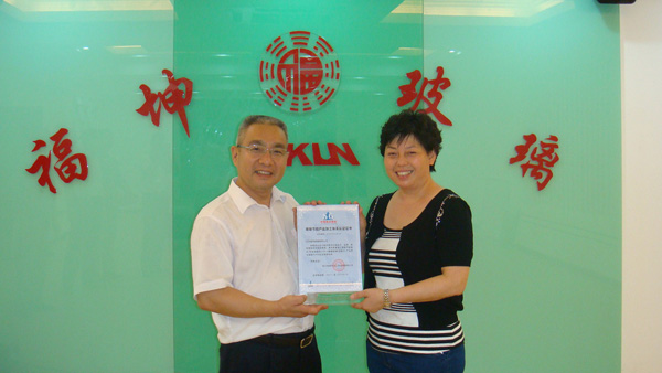 南玻集團副總經理趙光豪(左)授予我司加工體系認證證書