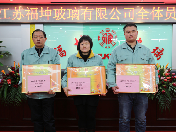 銷售部、中空小線班組、切割班組 獎金1200元,頒發獎狀;