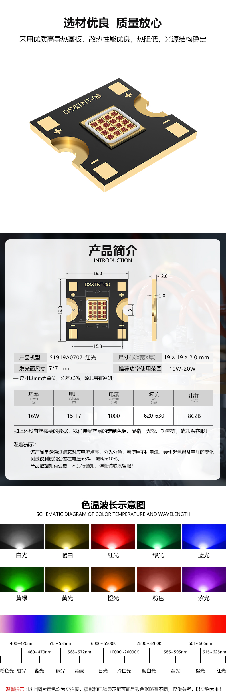 熱門標簽: 紅光倒裝COB 波長620~630nm 16W