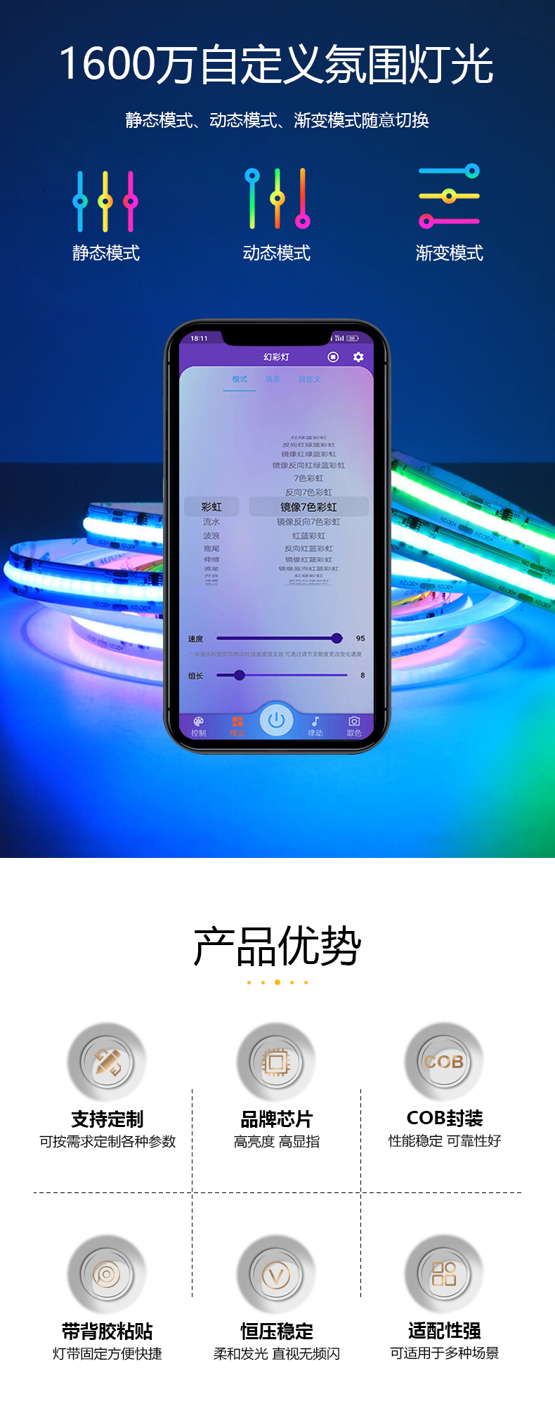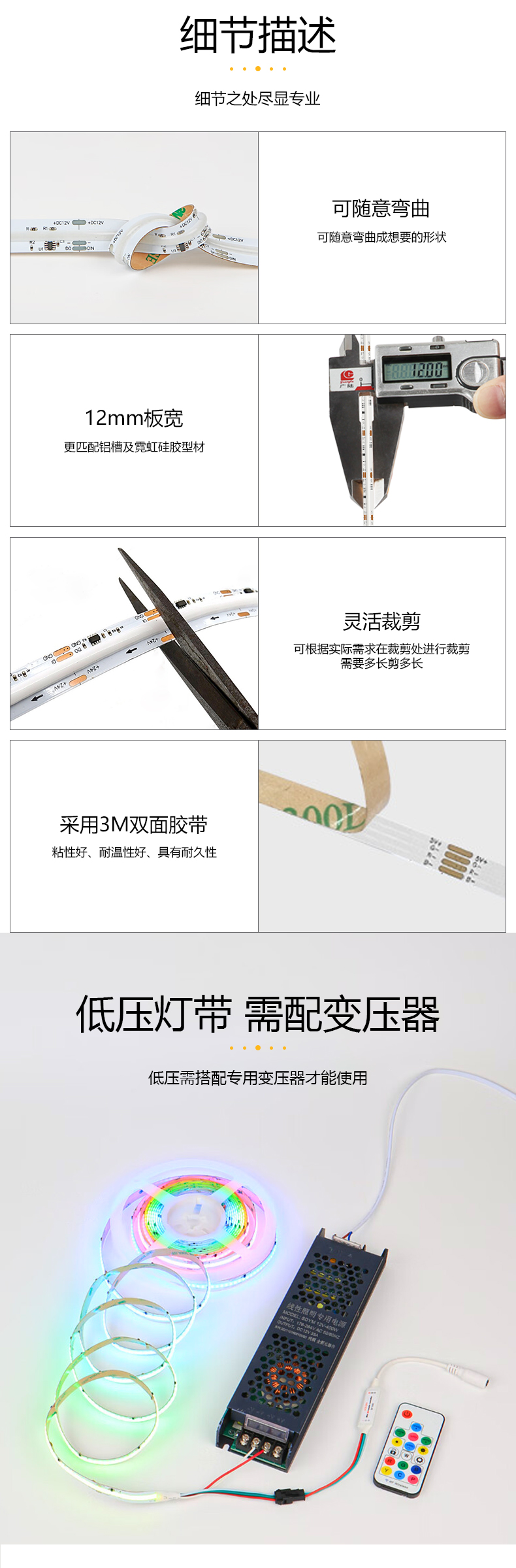 熱門標簽: 24VRGBW幻彩跑馬COB燈帶語音藍牙遙控控制氛圍裝飾彩色燈帶