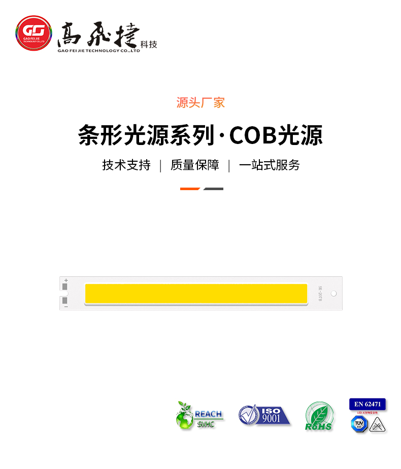 熱門標簽: 深圳高飛捷高功率高光效長條系列倒裝COB光源98*12mm