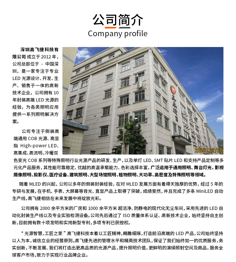 熱門標簽: 深圳高飛捷科技高功率高光效倒裝COB光源107.77*21.44mm