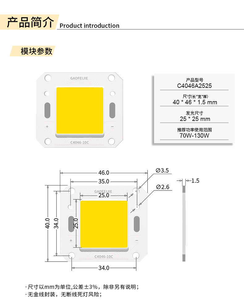 COB光源-戶外照明系列C4046A2525-10C-70~120W