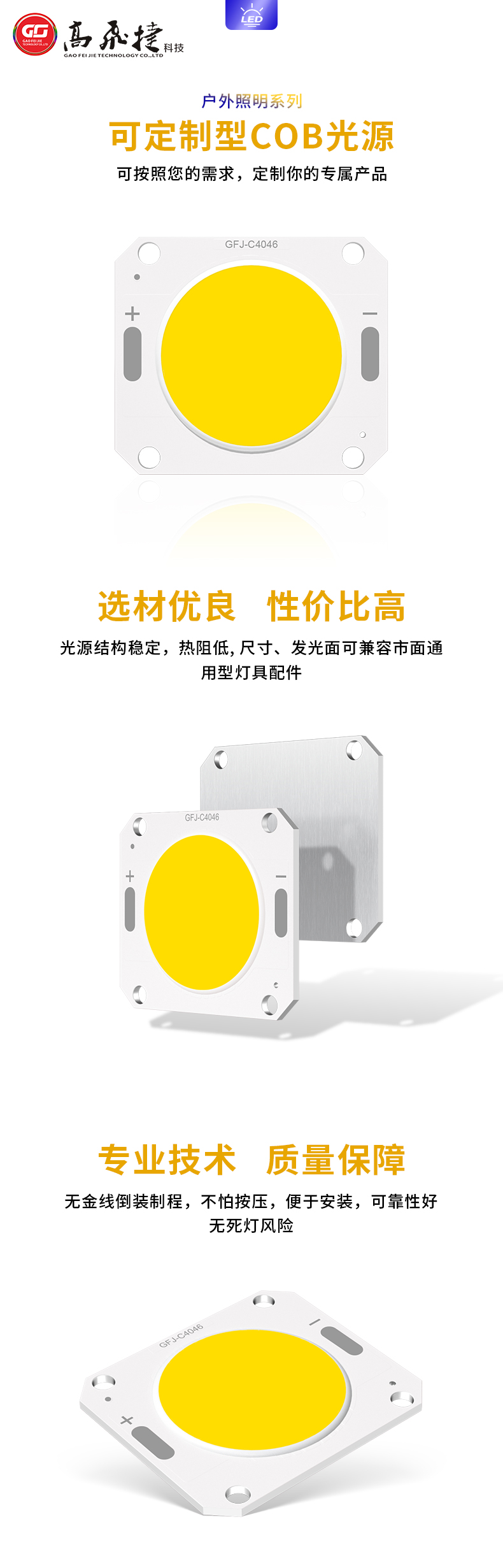 熱門標簽: 高飛捷科技戶外照明COB光源 集成LED燈珠 倒裝芯片